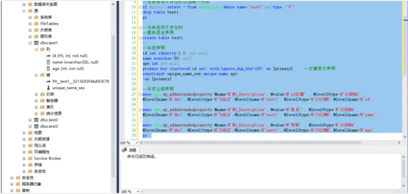 exec sys.sp_addextendedproperty @name=N'MS_Description', @value=N'id主键' , @level0type=N'SCHEMA', @level0name=N'dbo', @level1type=N'TABLE',@level1name=N'test1', @level2type=N'COLUMN',@level2name=N'id';