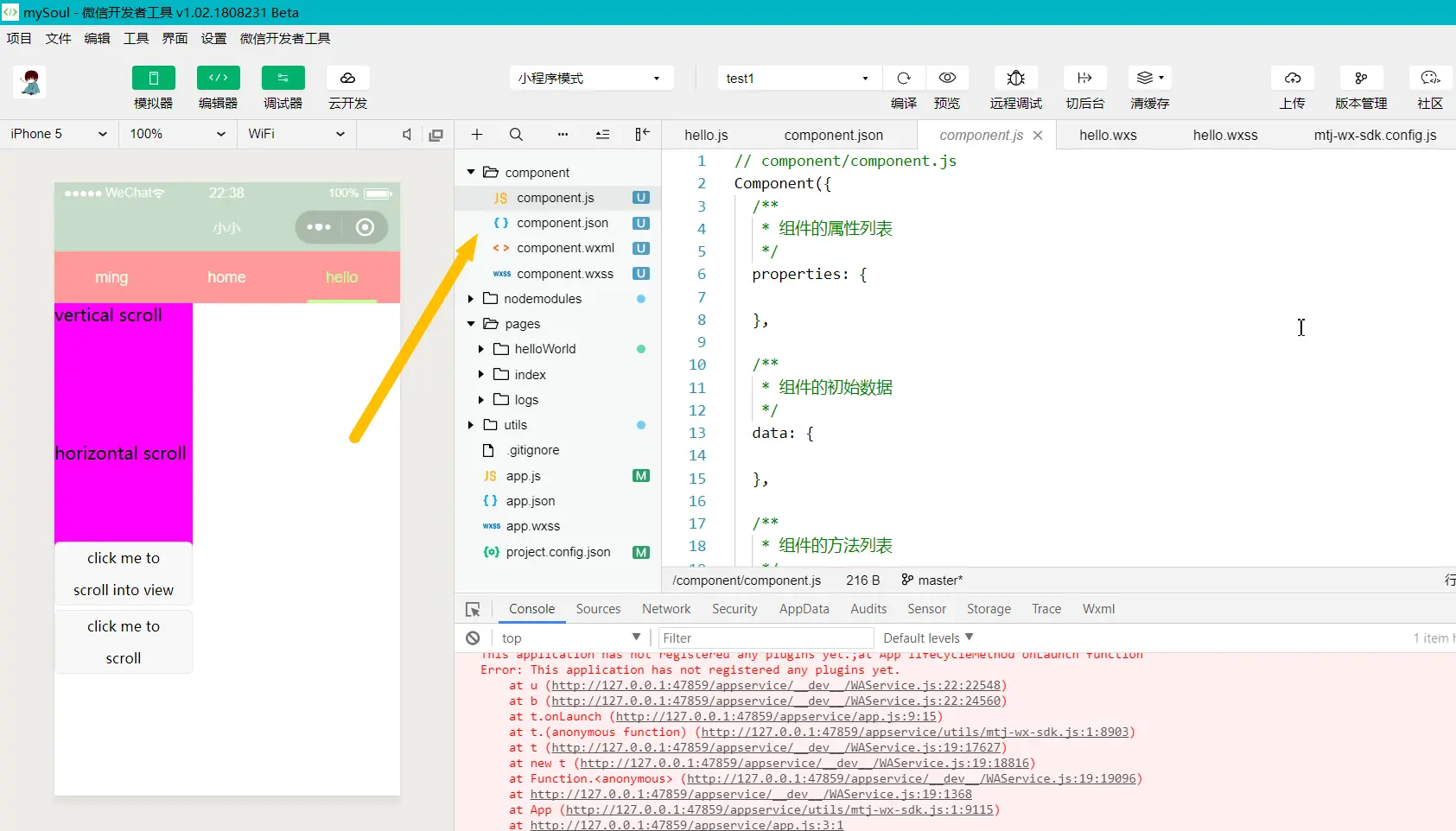 ps 这里需要重要component为大写。必须写为Component 否则会无法显示,一个小坑,不是驼峰命名法,╮(╯▽╰)╭