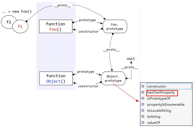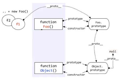 上面代码中我们看到:f1这个对象是被Foo创建,但是“f1 instanceof Object”为什么是true呢?