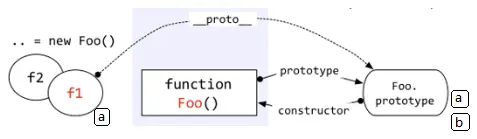 Instanceof运算符的第一个变量是一个对象,暂时称为A,如上面代码中的f1;第二个变量一般是一个函数,暂时称为B,如上面代码中的Foo。