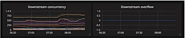 正如我们所提到的,并发并不总是一个直观的概念。为了增强可观察性,网络团队提供了不同的可视化,以便服务所有者可以配置其并发限制,然后监控这些限制如何影响系统。