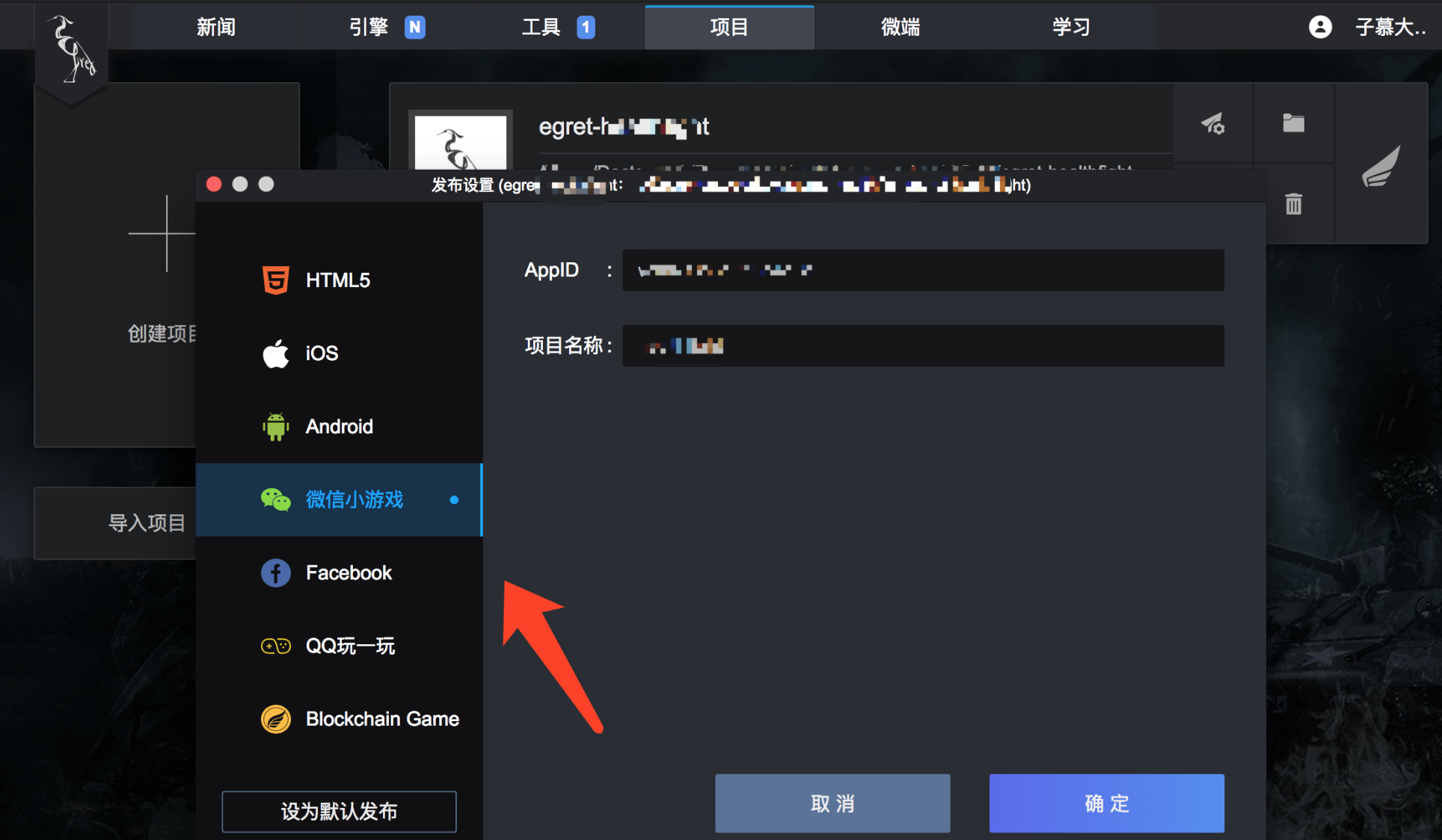 - 在公众号后台把设置里的服务类设置成游戏类,输入appId后会自动打开开发者工具游戏开发的界面