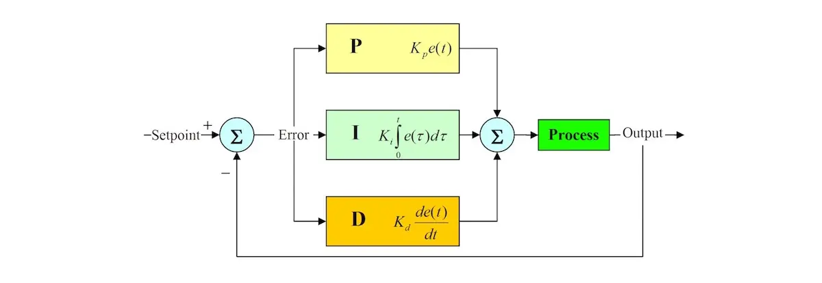 怎么让平衡车平衡呢?这需要使用目前广泛地应用于各种系统,平衡车、无人机的 PID 控制算法。它的主要作用就是调节系统使得系统中的某个参数值到达你的设定值。PID 分别表示了三个调节部分,比例、积分、微分,控制器的输出值就是这三者的和。