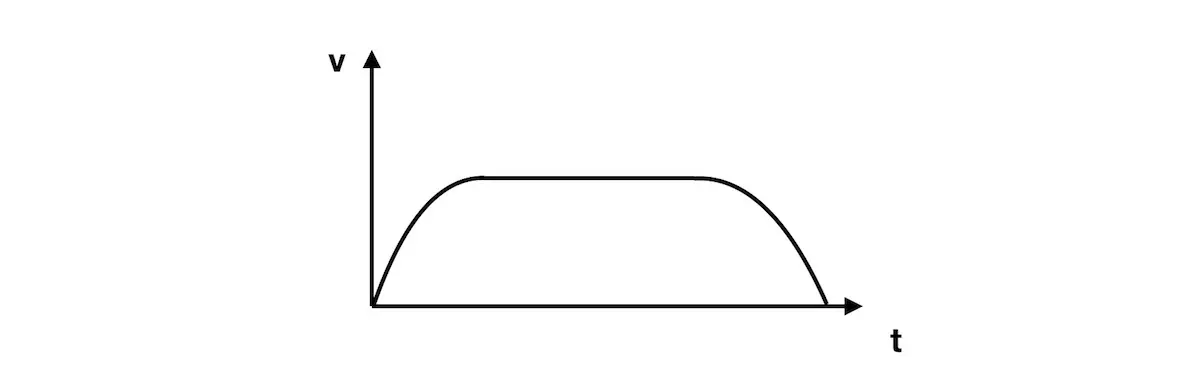 想一下真正驾驶平衡车的情况,如果要到达目标地点,首先要身体前倾加速。到达最大速度限制后身体基本保持直立,快要到目的地时后仰减速。所以我们希望平衡车移动到目标位置的速度曲线是这样的: