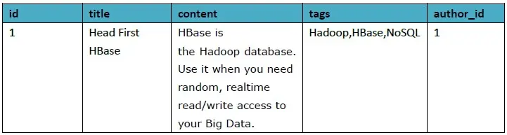 不过鉴于其它NoSql数据库也具有同样灵活的数据存储结构,该优势在本次选型中并不出彩。我们以一个简单的例子来了解使用 RDBMS 和 HBase 各自的解决方式: