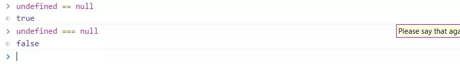 有趣的是,在 JavaScript 中,null 和 undefined 是两种不同的类型,这就是为什么会出现两个不同的错误消息。未定义通常是一个尚未分配的变量,而 null 则表示该值为空。要验证它们不相等,请使用严格的相等运算符: