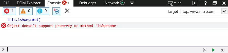 这相当于 Chrome 中的 “undefined’ is not a function” 错误。对于相同的逻辑错误,不同的浏览器可能会有不同的错误消息。