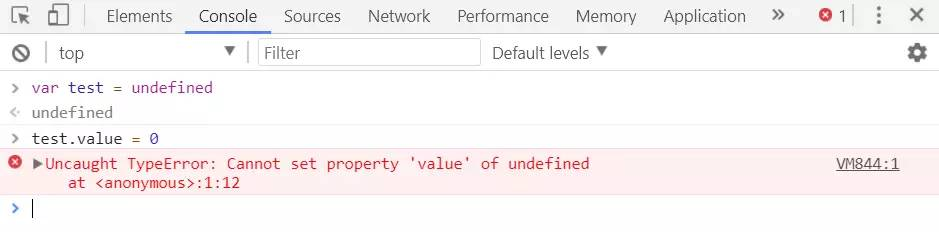 例如,在 Chrome 浏览器中,如果 test 对象不存在,就会出现这种错误: