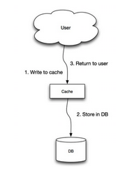 这个模式其实就是将 缓存服务 作为主要的存储,应用的所有读写请求都是直接与缓存服务打交道,而不管最后端的数据库了,数据库的数据由缓存服务来维护和更新。不过缓存中数据变更的时候是同步去更新数据库的,在应用的眼中只有缓存服务。