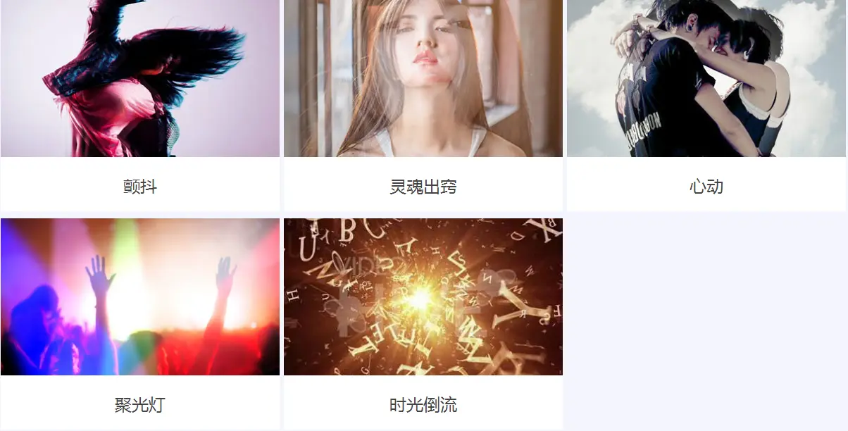 滤镜特效:颤抖 灵魂出窍 心动 聚光灯