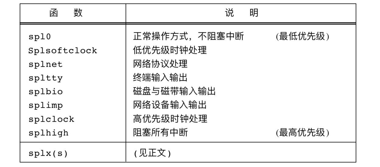 那么怎么解决这个问题呢?Net/3代码经常通过调用函数splimp和splnet。这两个调用总是与splx成对出现,splx使处理器返回到原来的优先级。
