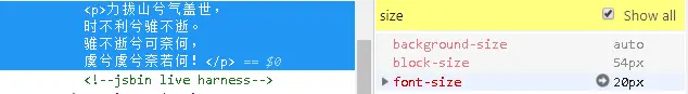 来更改一下html{ font-size: 20px; },可看到计算出的字体大小也改为20px;