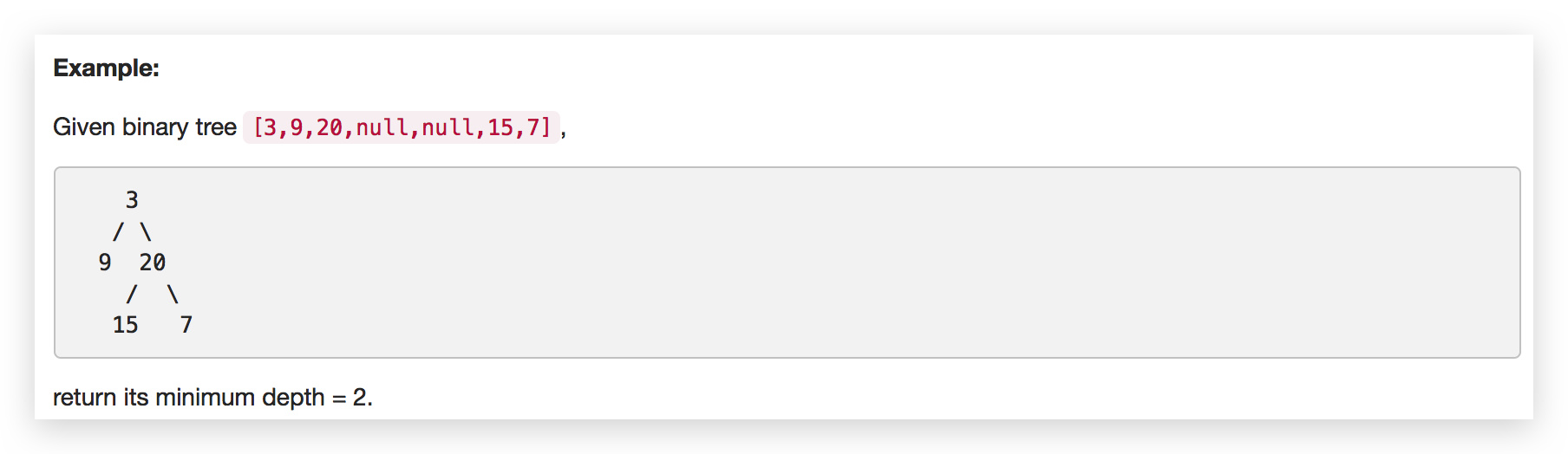 LeetCode:Minimum Depth of Binary Tree 给定一个二叉树,找出其最小深度。 最小深度是从根节点到最近叶子节点的最短路径上的节点数量。