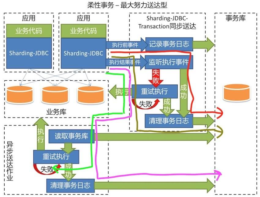 - 【绿线】执行失败,同步重试失败,异步重试失败,事务日志保留