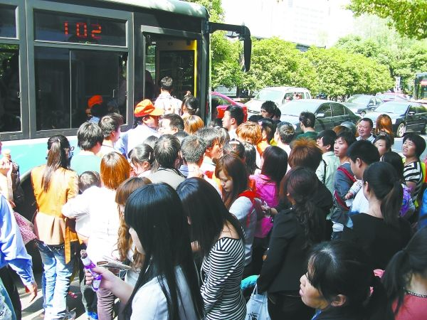 在等公交时,遇到人多的时候经常需要排队或者挤进去。