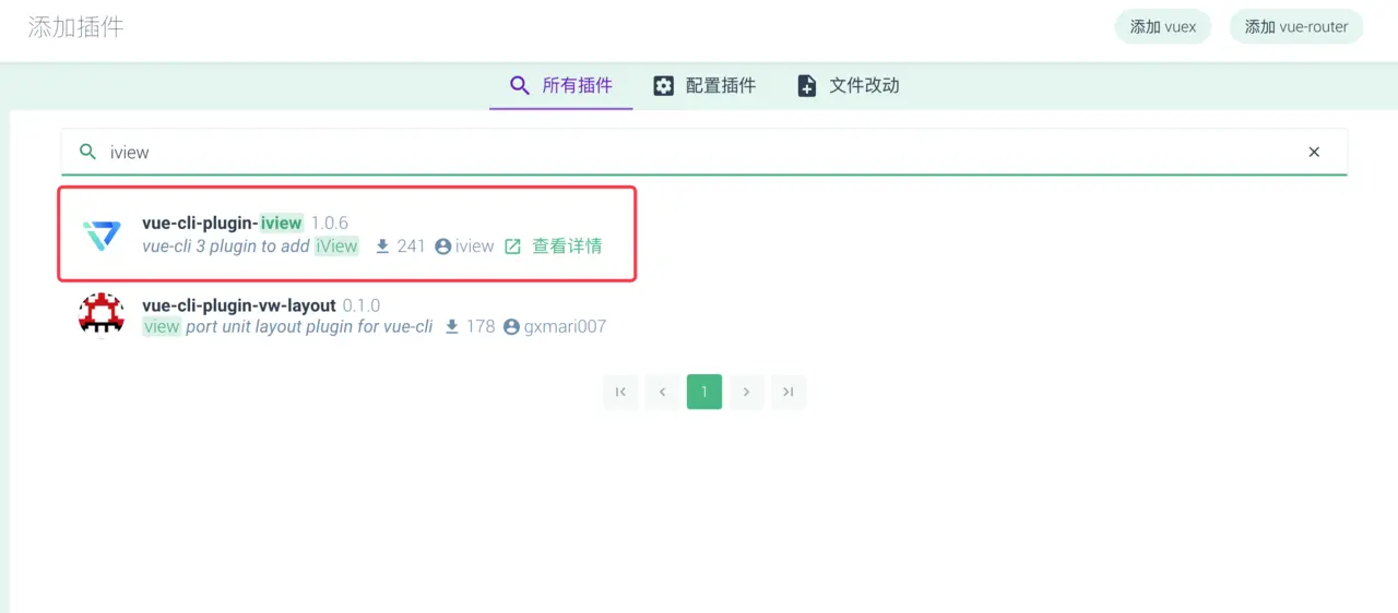 iView 文档也对工程构建的引导进行了修改,去掉了 iView CLI,而是推荐使用 Vue CLI 3。当你在使用 Vue CLI 3 管理你的项目时,你可以在插件中搜索 iview,然后安装第一个就可以了: