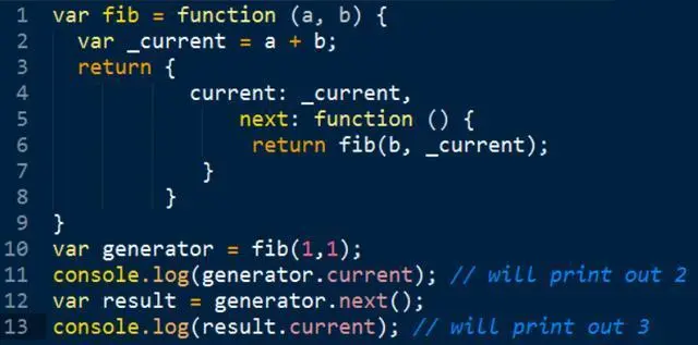 // 同时返回next函数,函数体为return fib(b, _current); 此时b为1,_current为2