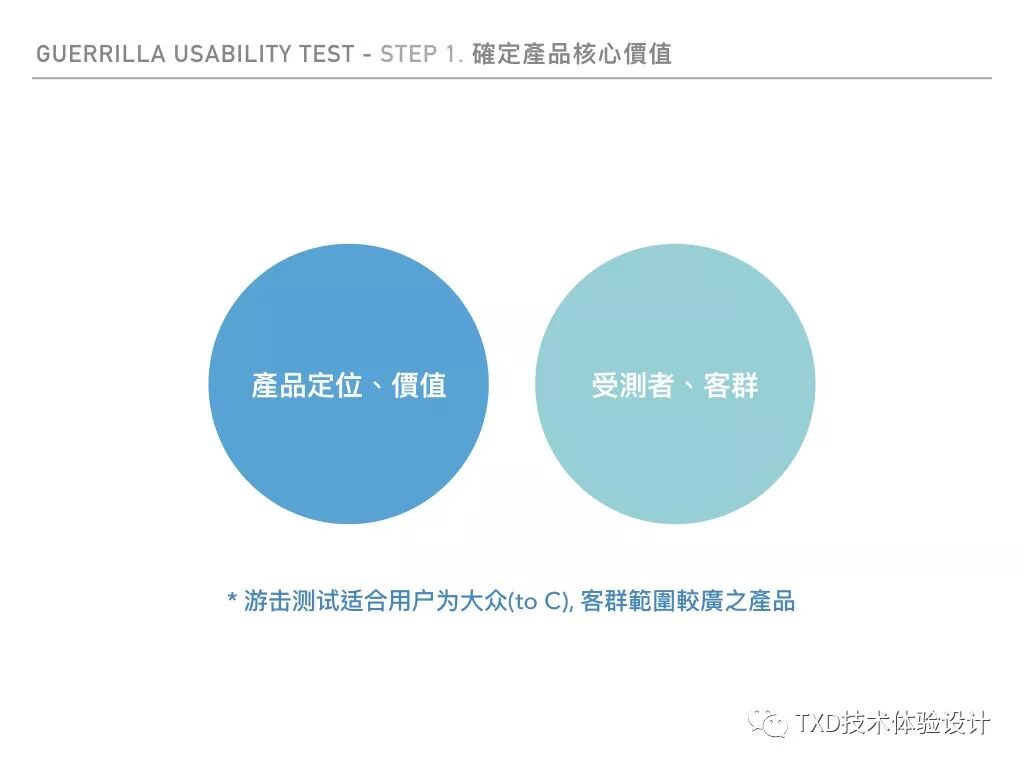 游击测试适合使用与需求策划后,在产品有明确价值定位、策略等,与设计与开发前期。透过上面的内容必能感受游击测试即位高效,低成本的方式来获取用户反馈并落实与产品修正。解决资金、时间不足的问题,然而如同众多的用研方法一般,并非单一方式能够达成与用户最贴近的桥梁,而是要配合其他选择相辅相成来促成最佳的结果。
