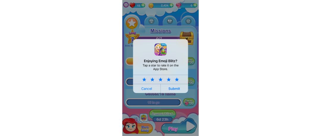 除了定义中提到的【文本输入框】之外,iOS还提供了默认打分的组件【System Rating and Review Prompts】: