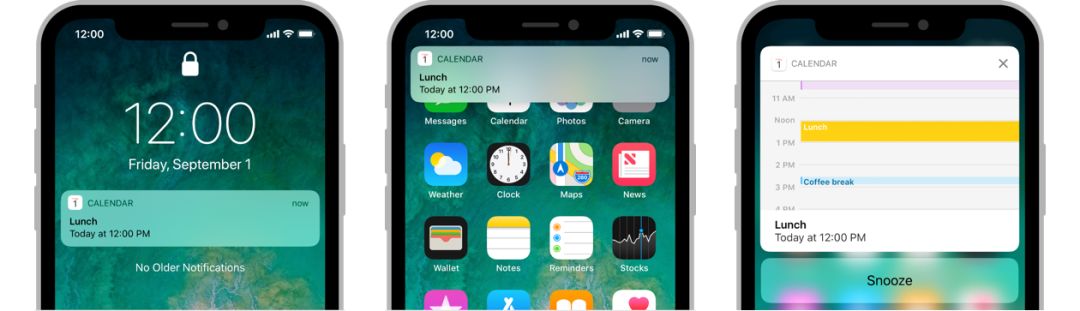 无论手机是锁屏状态还是使用状态,app应用都能通过通知,第一时间传递给用户重要信息。每条通知应该包括 应用名称、小图标与信息内容。