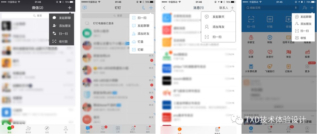 截屏来源:微信,钉钉,手机淘宝,支付宝