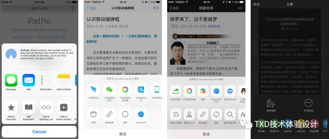 截屏来源:哔哩哔哩,teambition,照片,微信(未使用原生弹窗)