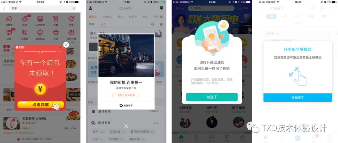 截屏来源:滴滴,大众点评,手机淘宝,支付宝