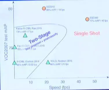 前面提到的这些方法其本质都是在效率和功率上寻找折中,上图是对一些经典方法的总结,横轴是速度,纵轴是MVP。可以看到single shot类的方法明显要更快一些,不过它的实时性是基于牺牲一定的精度。