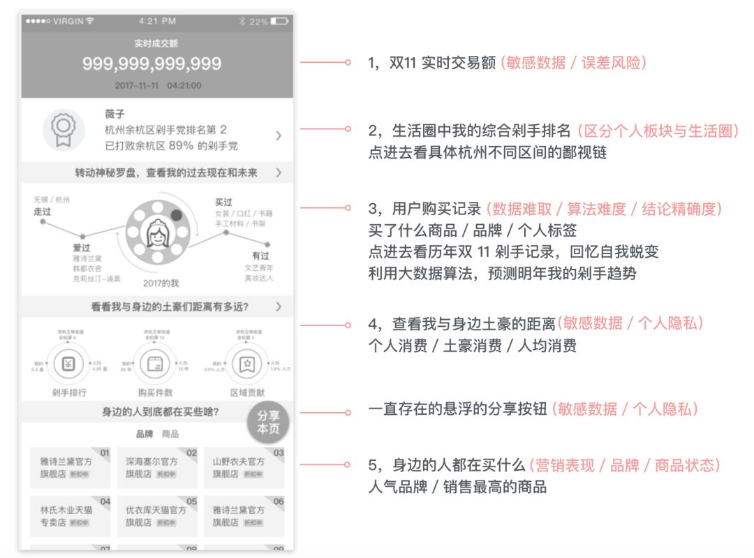 4,低频但重要的信息不能砍掉,会流失重要类型群体;当时在信息层级中,区域鄙视链中因为其他区域排名的操作低频,用户关注度也不高,如果从普通淘宝用户角度,此信息是没必要展示的;但是对于媒体用户,此板块的信息关注度非常高,非常容易引发热点讨论。