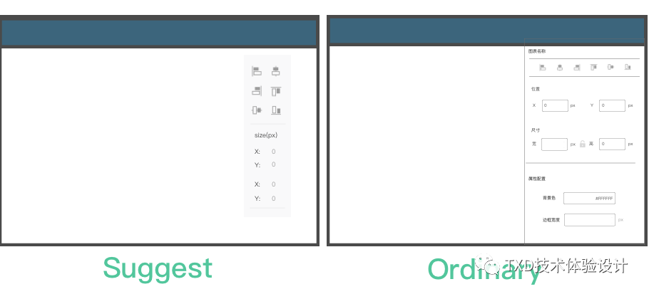 同理,如果“属性面板”的内容不是很多,也可以考虑将其做成悬浮模式而不是固定在页面某个区域。我们知道如果“属性面板”固定在某个区域中的话,内容较少的“属性面板”会有很多留白遮住工作区,给人一种笨重的感受,而可浮动的“属性面板”会显得更加轻盈。