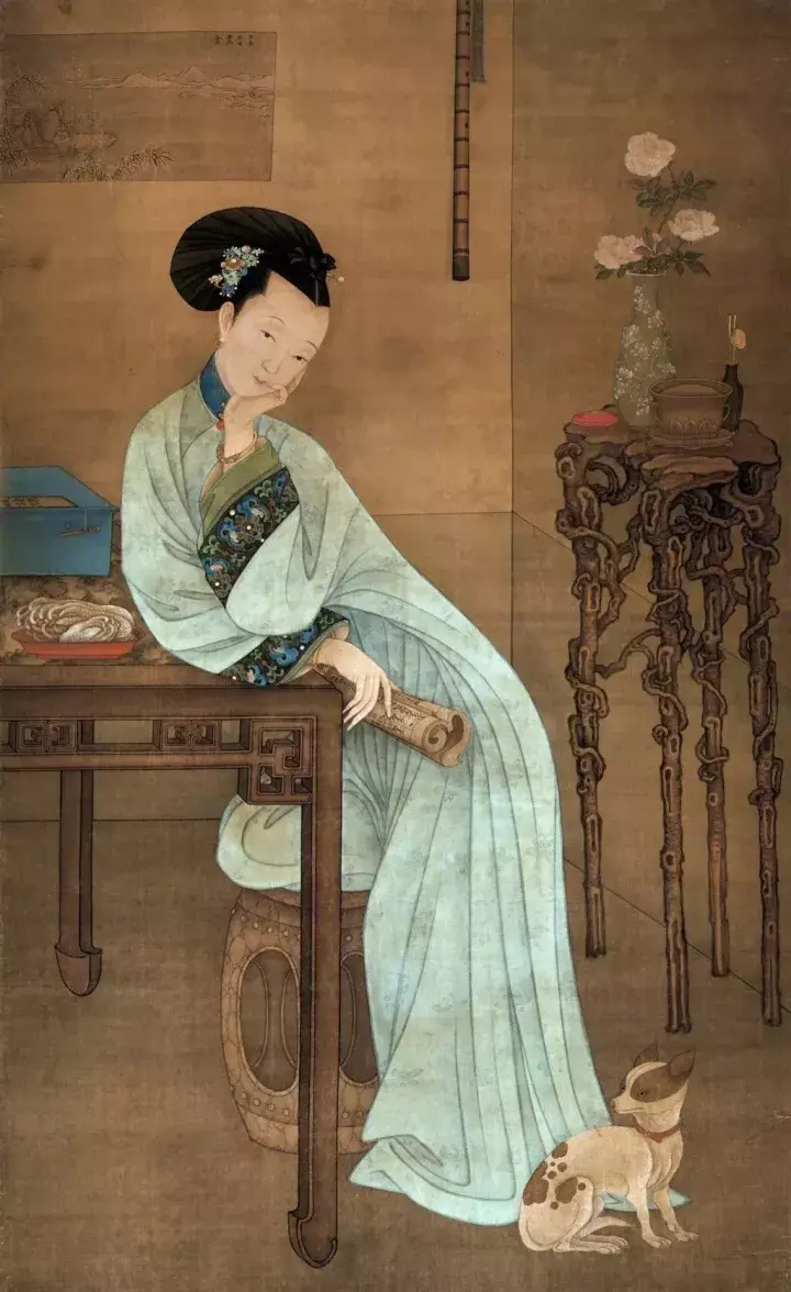 冷枚的《春闺倦读图》中的满族仕女,温婉恬静,妩媚动人。