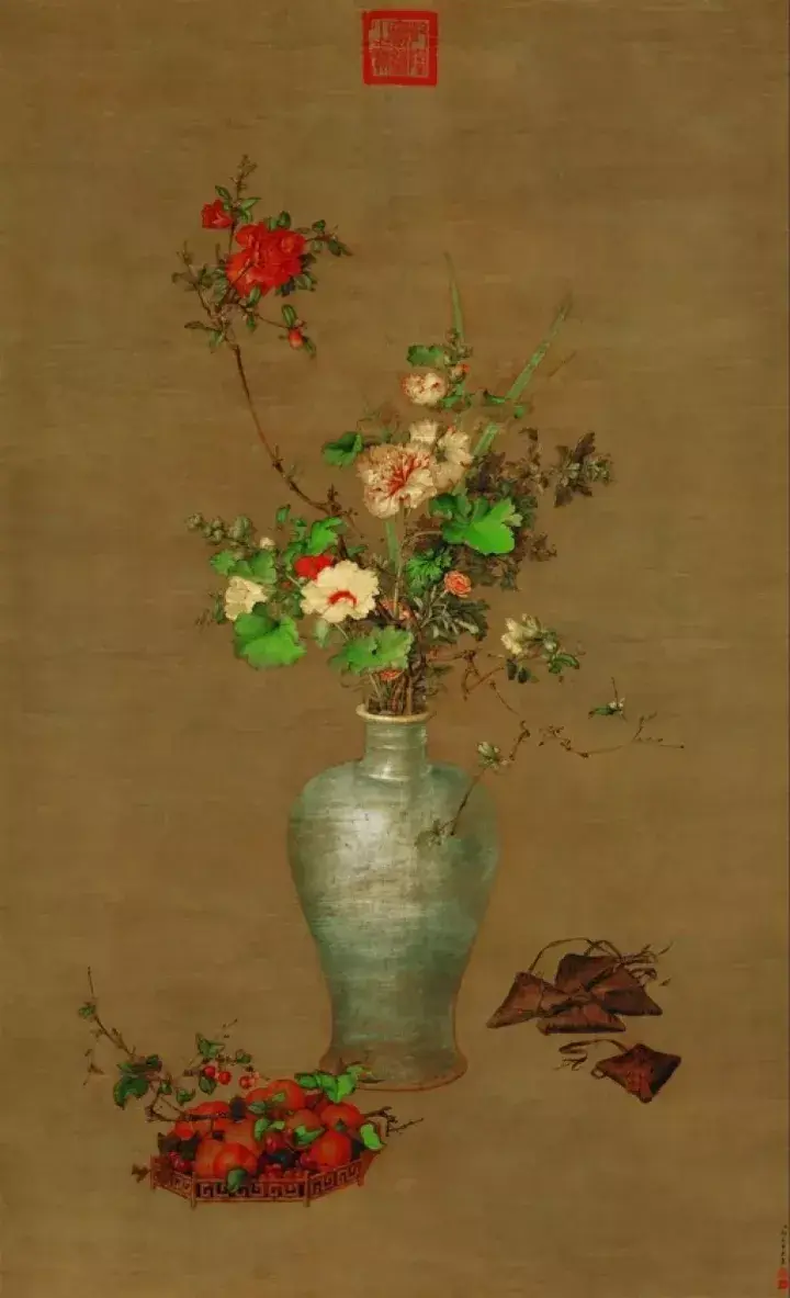 这两幅画一人,一物,伴随着绢本厚重的古典气息便成了《延禧攻略》色调最初的灵感………