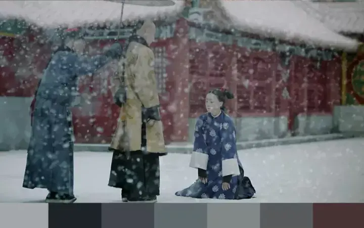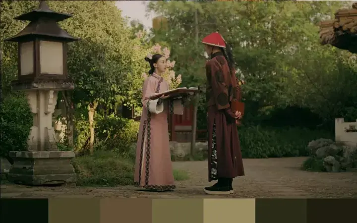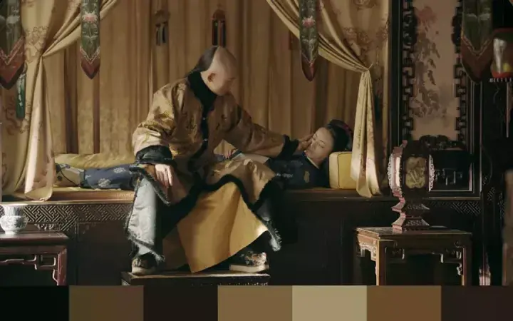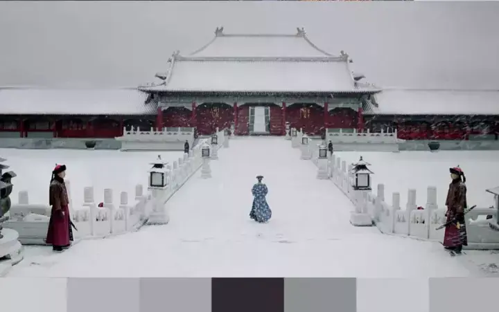 根据绢本画作麦色底所呈现的独特质感,在《延禧攻略》色调创意中加入麦色底色,再根据不同时间,场景,故事,人物设定等对于麦色底浓度色彩偏向进行调整,在保证画面固有色的基础上逐层推进叠加其他色彩加以配比形成如今看到的古画作质感。