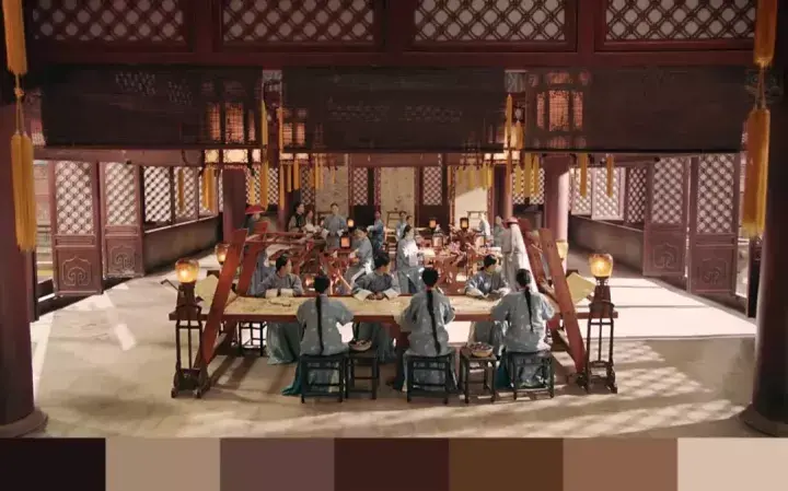 所以根据本剧的定位后期调色在配色上全部采用中国传统色系。中国传统色系具有一套完整的色彩体系与寓意,几千年来融入古人生活中的衣食住行方方面面,不同的色彩但都有着不约而同的美好名字,且每个颜色都寓意深远,或热烈或悠远,或庄严或张扬,或悲壮或堂皇……色与物相互作比,常常又生出另一道深远美好的光景……