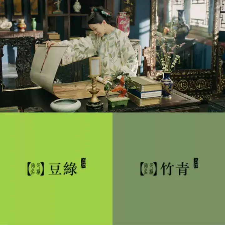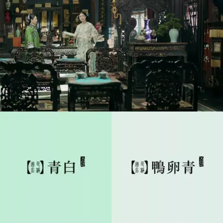 本次《延禧攻略》色调所采用的中国传统色系最大特点就是以天然植物,动物,矿物作为色彩原料,这样的来自自然界的颜色,色彩范围广又极富生命力,少了工业化学染剂色的呆板锋利,多了一份温润柔和。能更好的将观众带入故事设定发生的时代。
