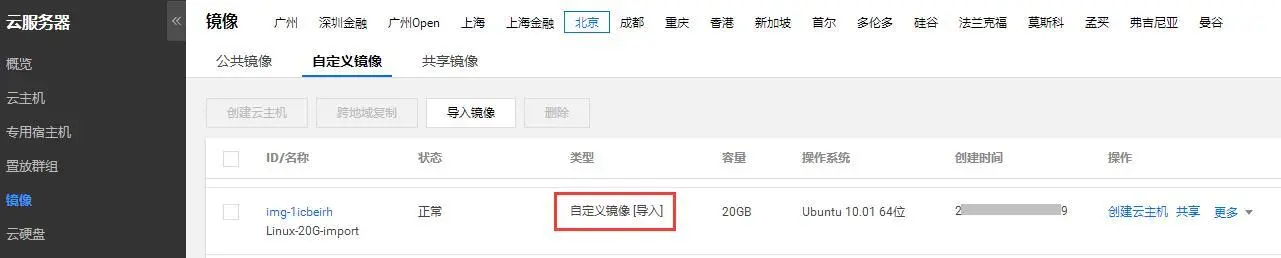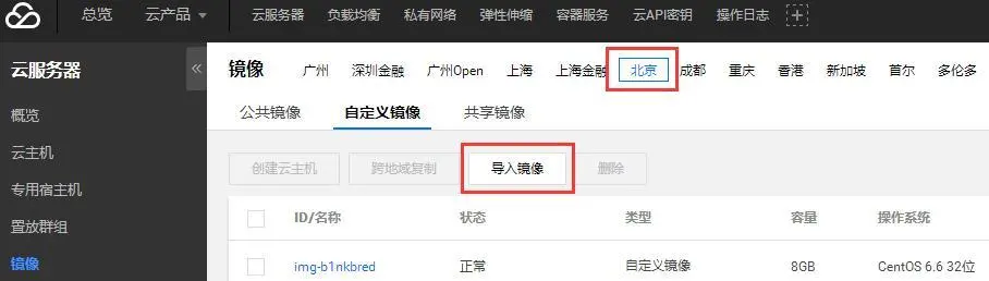 - 镜像导入成功之后,则可以登录镜像控制台,找到已经成功导入的镜像,然后基于该镜像创建云主机。