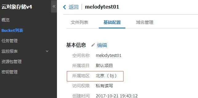 - 创建bucket(在腾讯云控制台操作,示例melodytest01);