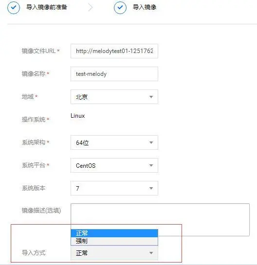 - 关于导入方式,如果正常安装了cloud-init,则选择【正常】,否则请选择【强制】。