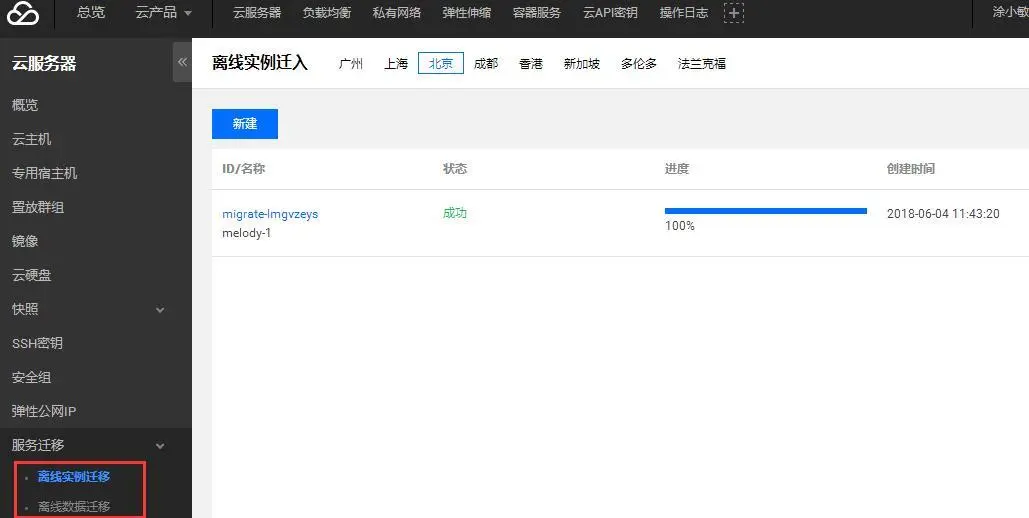4、等待迁移任务完成,可以在控制台中看到进度。