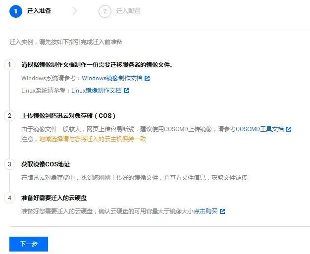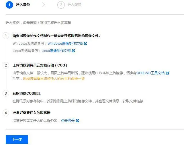2、导入功能,步骤是把存在COS的镜像导入到镜像控制台,然后再基于该镜像创建CVM;而云服务器迁移则是,直接从COS上拉取镜像文件,用该镜像置换一个已存在的CVM实例的系统盘,从而实现迁移。(同理,数据盘的迁移也是一个类似的过程。得先创建CVM或者CBS,再使用云服务器迁移的功能。)
