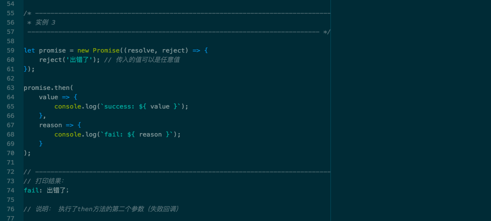 - 4、调用reject,会执行then方法的失败回调(第二个参数)