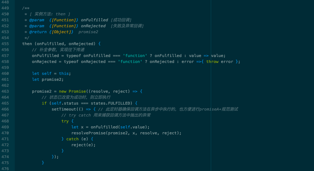 setTimeout(() => { // 此定时器确保回调方法在异步中执行的,也方便进行promiseA+规范测试