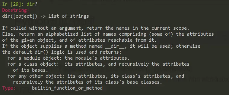 我们可以使用dir()函数来查看对象都含有哪些成员: