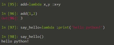 Python中使用lambda关键字即可创建lambda表达式: