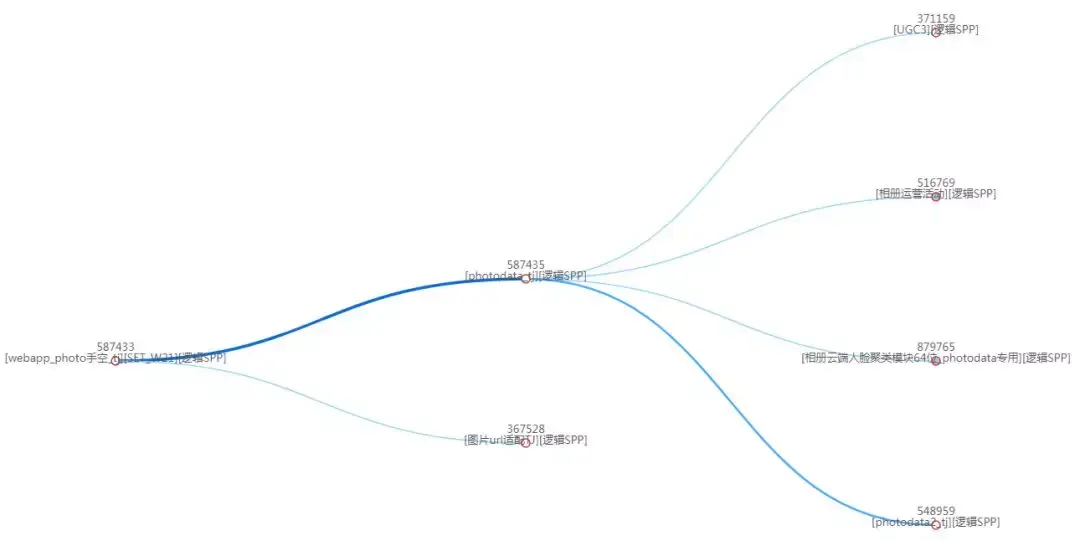 于是我们采用另外一种方法来实现核心链路视图的绘制:根据路由、抓包、主被调关系梳理出接入->逻辑->存储三层的完整调用关系链路。结合不同的场景,在完整关系链的基础上根据服务主被调次数,出入包量等指标做进一步过滤。最终得出业务核心关系链。