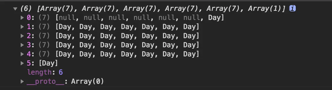 注:这是一个无关UI的组件,我们要做的只是如何去构建一个这样的日历对象。