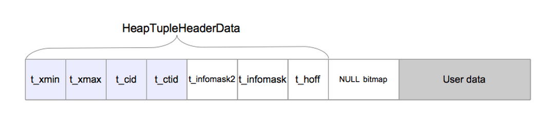 在上图中我们需要了解的和事务相关的结构是HeapTupleHeaderData结构,这个也就是一条元组的“头”部分。