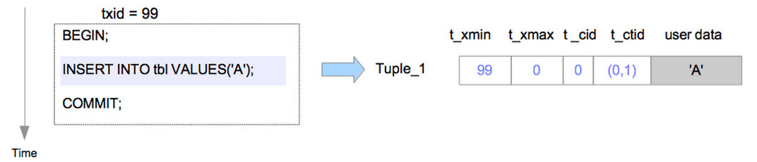 2.txid为99的事务插入了该元组==> Tuple_1。