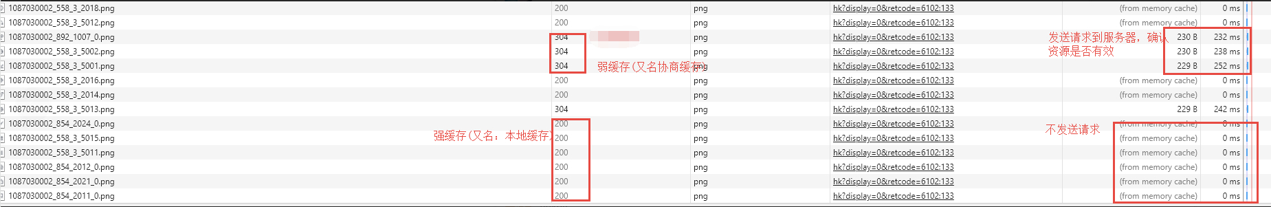 - 请求:强缓存不发请求,直接从缓存中读取,弱缓存发送请求,若验证文件没有被修改,返回304