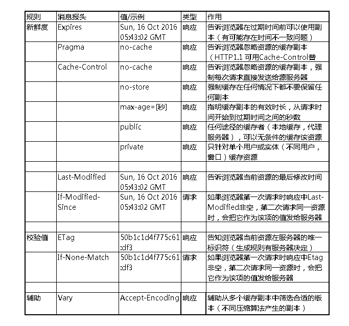 - 在HTTP请求和响应的消息报头中,常见的与缓存有关的消息报头有: